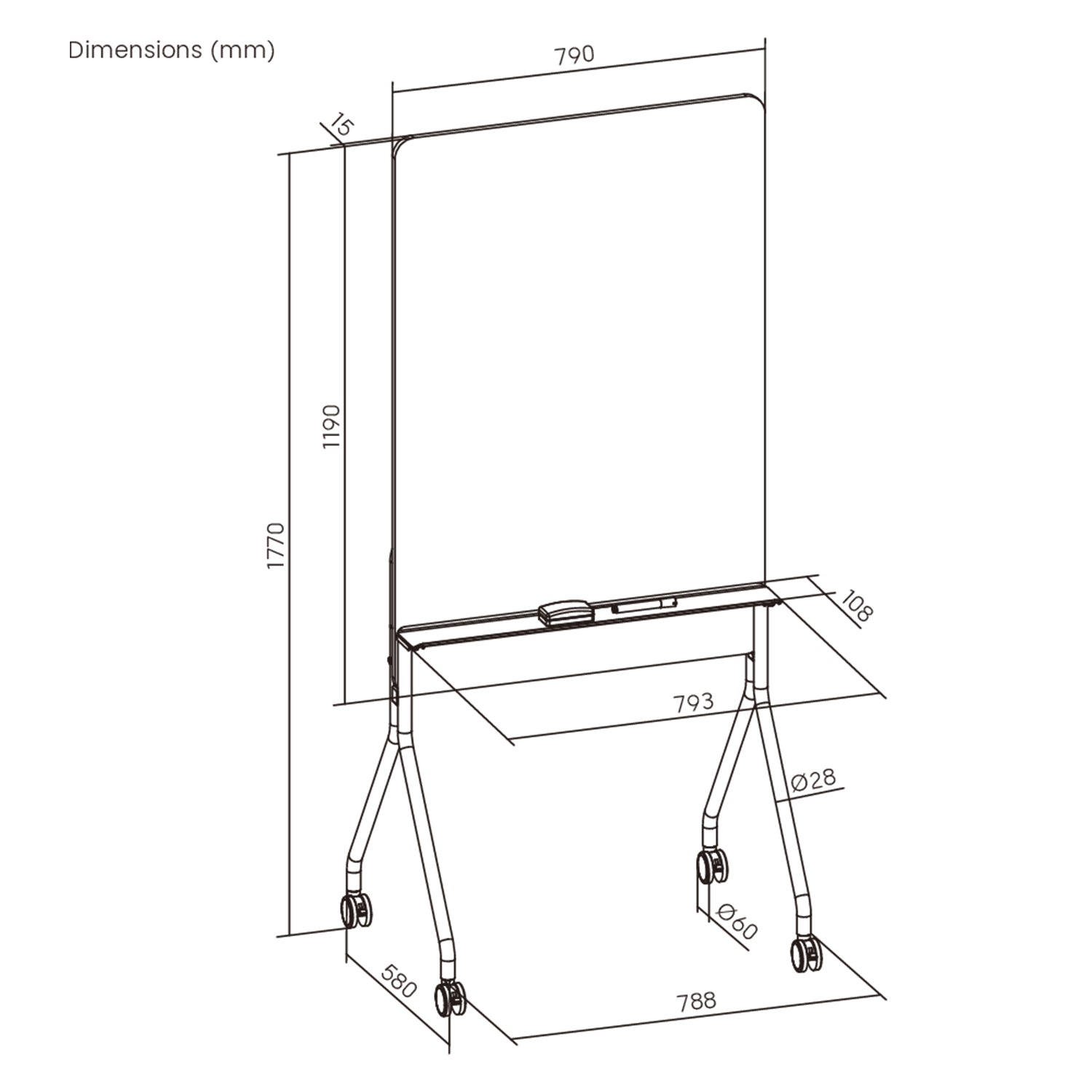 The board's 119x79 cm surface gives you enough space for notes, sketches or drawings, while not taking up too much space. It's an optimal size that will work well in both a conference room and a home office.