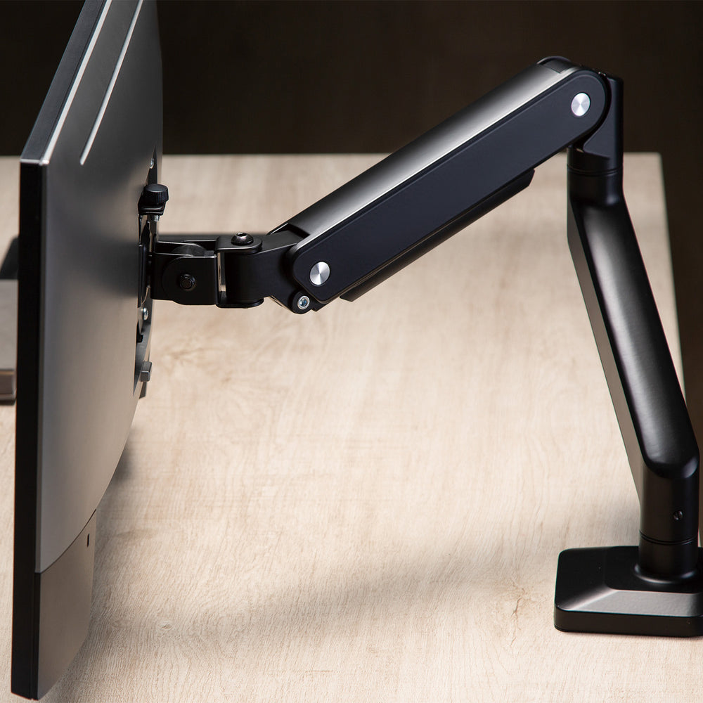- Eine integrierte Gasfeder sorgt für eine mühelose Positionierung des Bildschirms.